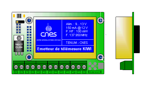 L’émetteur Kiwi est spécialement conçu pour les jeunes expérimentateurs qui désirent mettre en œuvre un système de télémesure à bord de fusées ou de ballons, au lien ci-après , retrouvez la documentation complète du CNES. lien. Merci à F8LDX pour l'info
